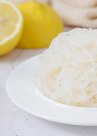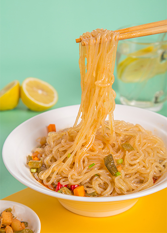 美味大膽嗦,解饞無腹擔。魔芋粉絲晶瑩透亮,含有葡甘聚糖,具有強大的膨脹力,產生飽腹感。